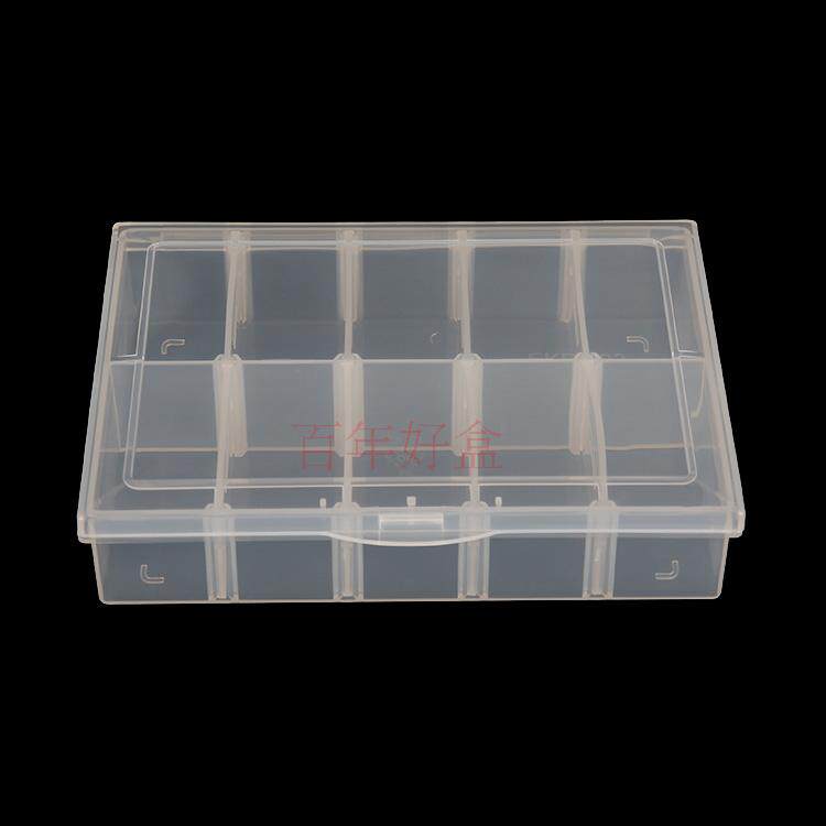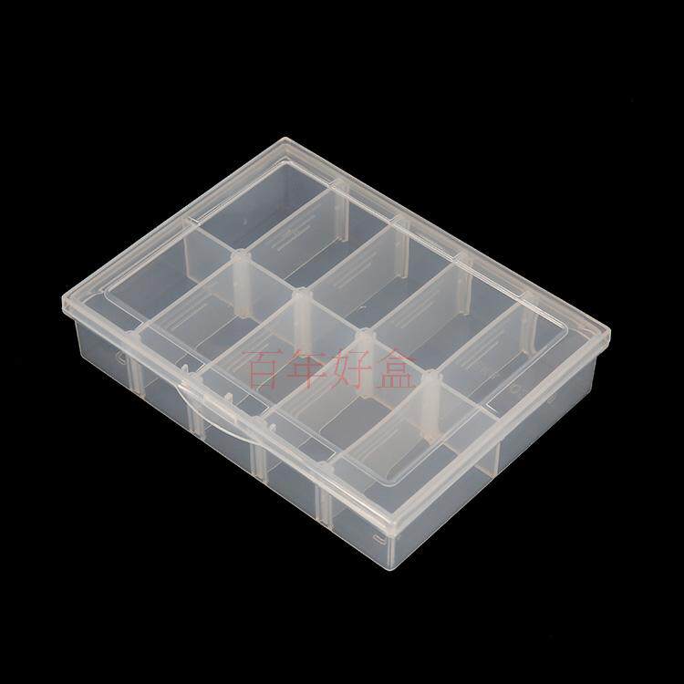 10-grid detachable rectangular parts storage box transparent tool partition packaging lattice box PP plastic box with cover