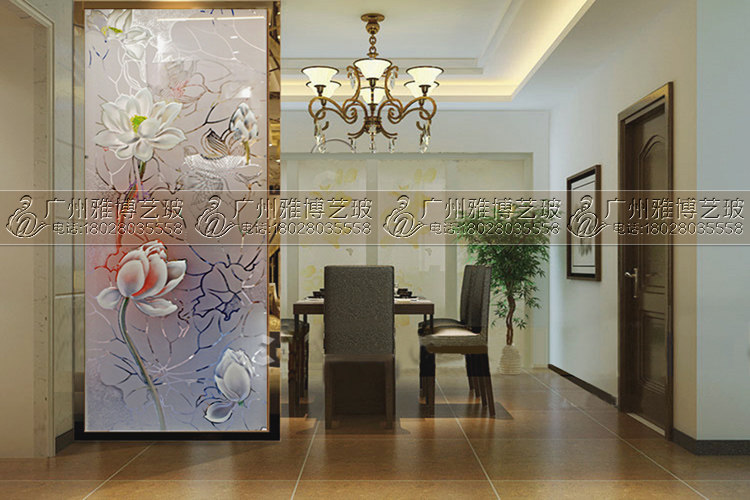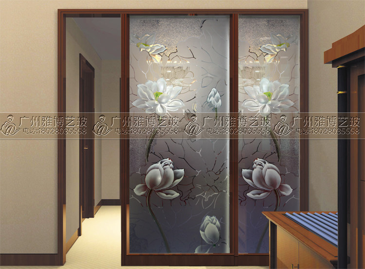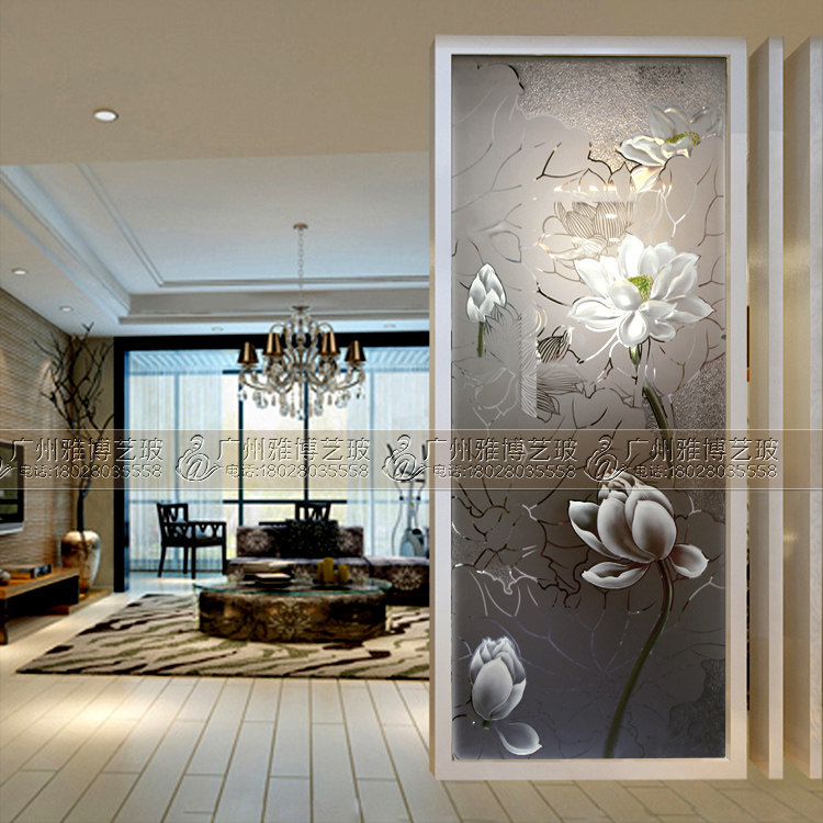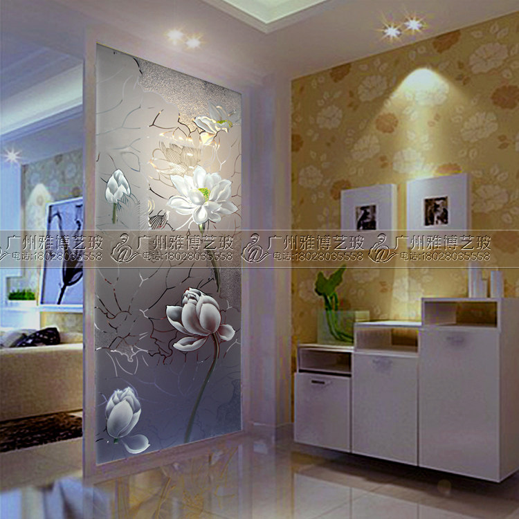 Art Glass Xuanguan Background Wall Screen Partition Frosted Light Transmission Double-sided Effect Decoration Steel Chemical Process Lotus Flowers