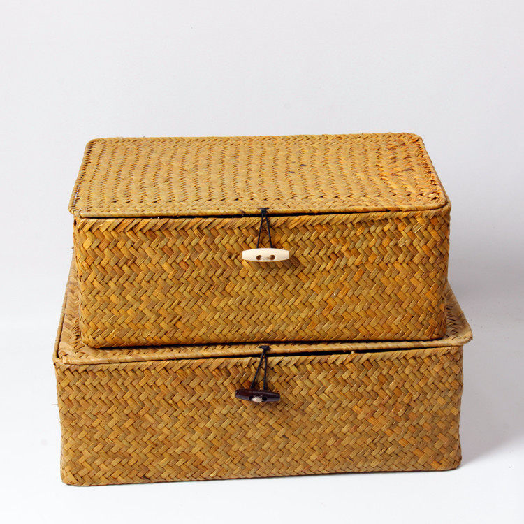 Leisuge Penthouse Handmade Natural Seagrass Choreography Containing Box Miscellaneous Clothing Finishing Basket With Lid Containing Box Tea Track Zero Fit