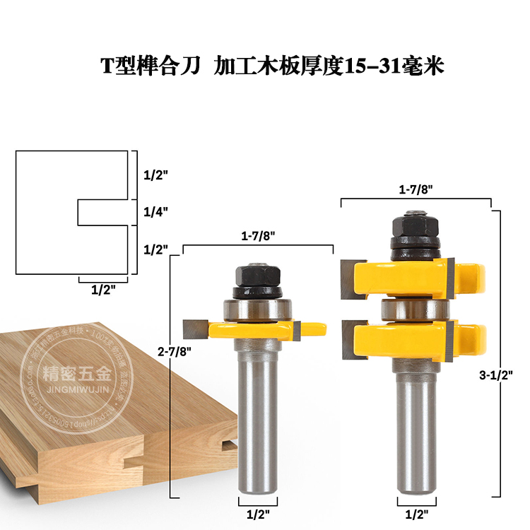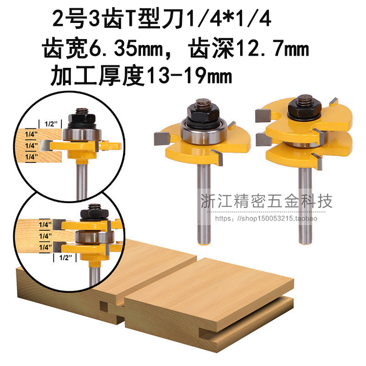 High-grade ball 3-tooth T-type tenon knife Square tooth male and female knife Trimming knife Splicing board knife Woodworking milling cutter tenon joint