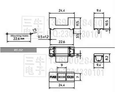 PTF-77A Insurance tube holder PCB board mounting pin fuse holder 5x20mm horizontal fuse holder