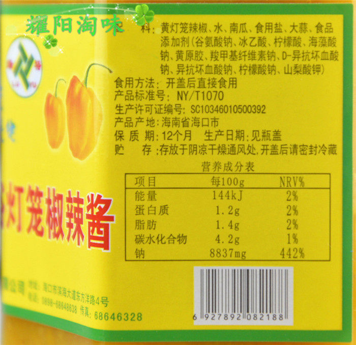 Green Yu Lantern Chili Sauce 700g authentic Hainan Yellow lantern chili made into hot pot dipping sauce