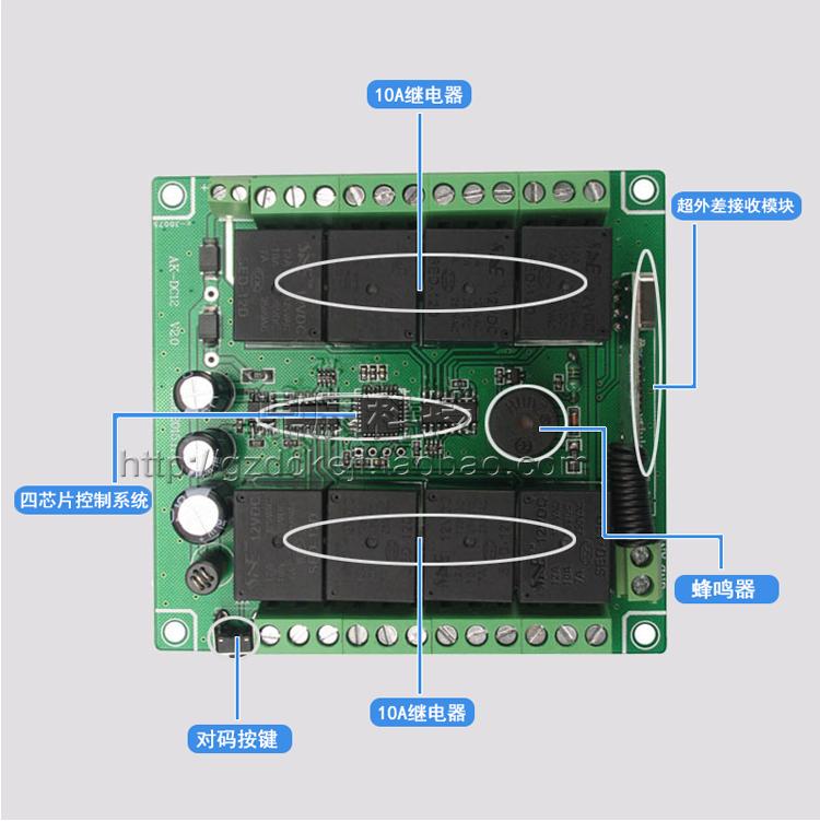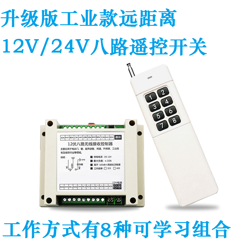 12V24V eight-way wireless remote control module lamp motor 8-way 220V controller long-distance remote control switch