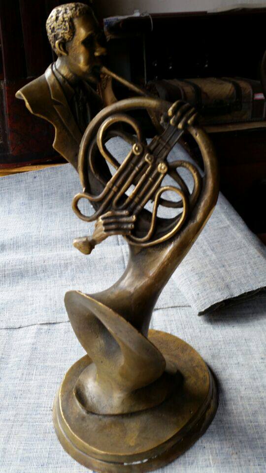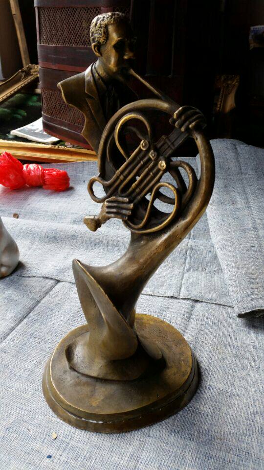Western antique old statue old trumpeter bronze statue full copper European character trumpeter bronze statue can be rented