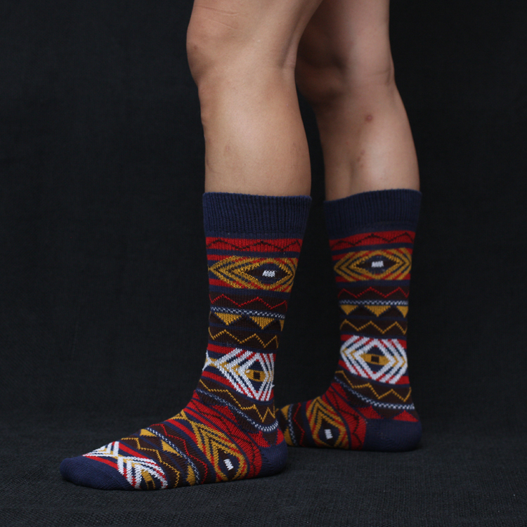 Autumn Winter Men's National Wind Coloured Silo Socks Full Cotton Day Series Original Juku Wind Thickened Coarse Thread Socks Trendy Men Socks