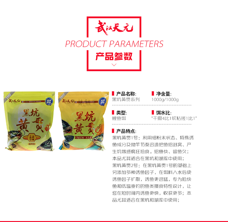 Wuhan Tianyuan New Product Heikeng Huang Guanli No 1 No 2 1000g bait Loose gun yellow face carp bait bait