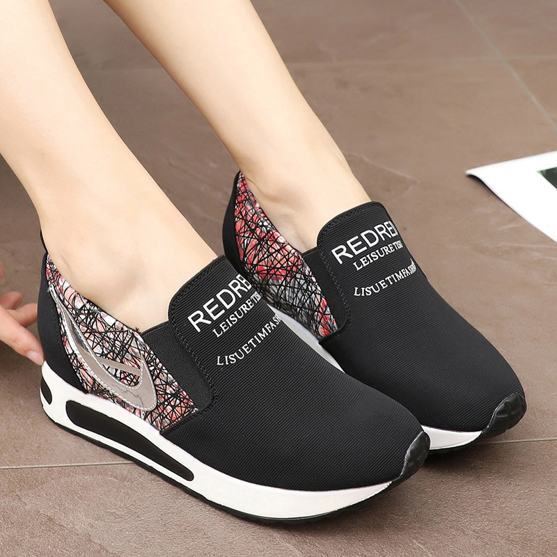 Spring Autumn Old Beijing Cloth Shoes Women's Single Shoes With Inner Heightening Casual Sports Moms Shoes Comfort Slopes Heel Pine Pastry Women Shoes
