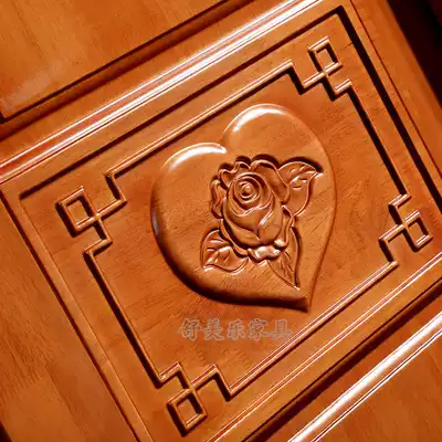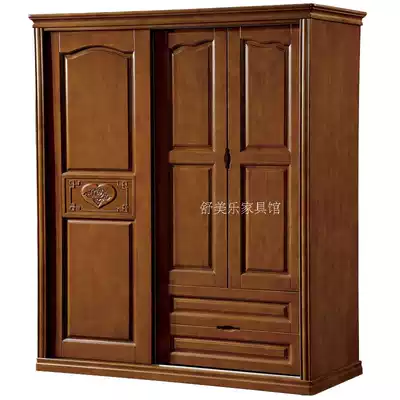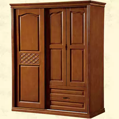Solid wood rubber wood one push two open carved wardrobe assembly bedroom large-capacity storage sliding door wardrobe Chinese style simple