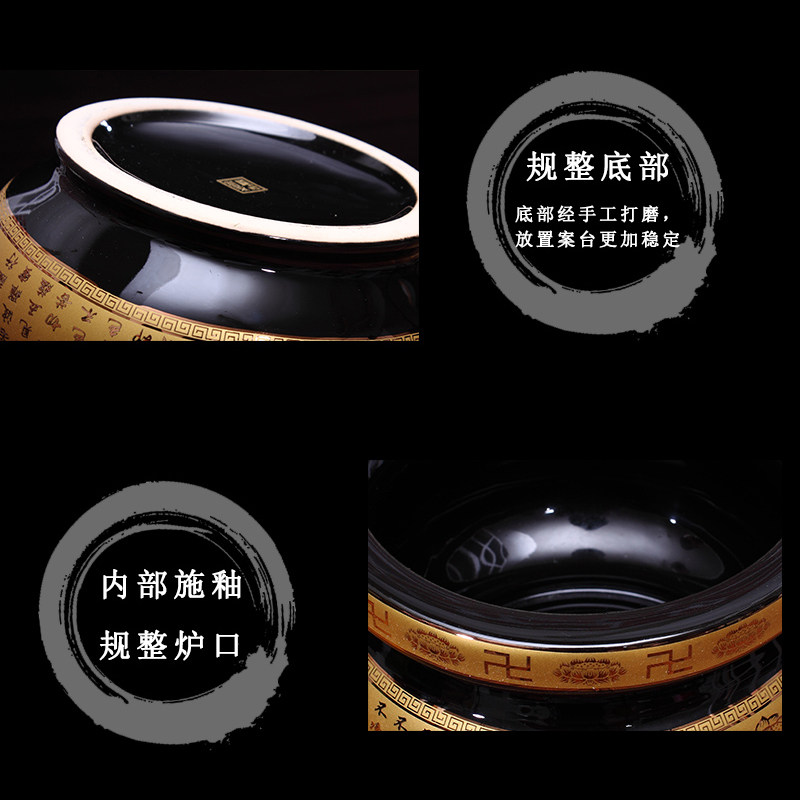 Antique black ceramic incense burner Lotus Heart Sutra living room Buddha incense burner ceramic Buddha hall incense insert to attract wealth into treasure incense burner