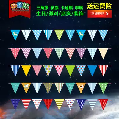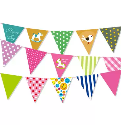 Pennant small flag bunting birthday decoration rainbow flag ins style 61 June 1 Children's Day Kindergarten