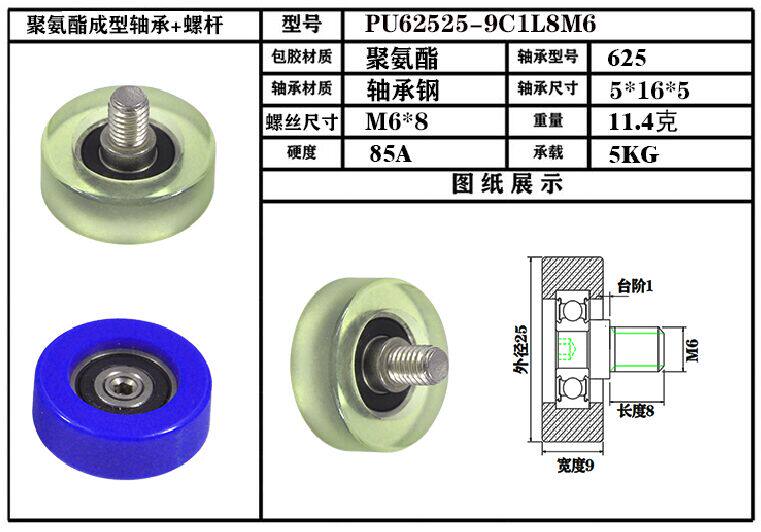 Messme Belt Ball Bearing Transparent Polyurethane Railwheel Roller Silent Wear Resistance PU62525-9C1L8M6