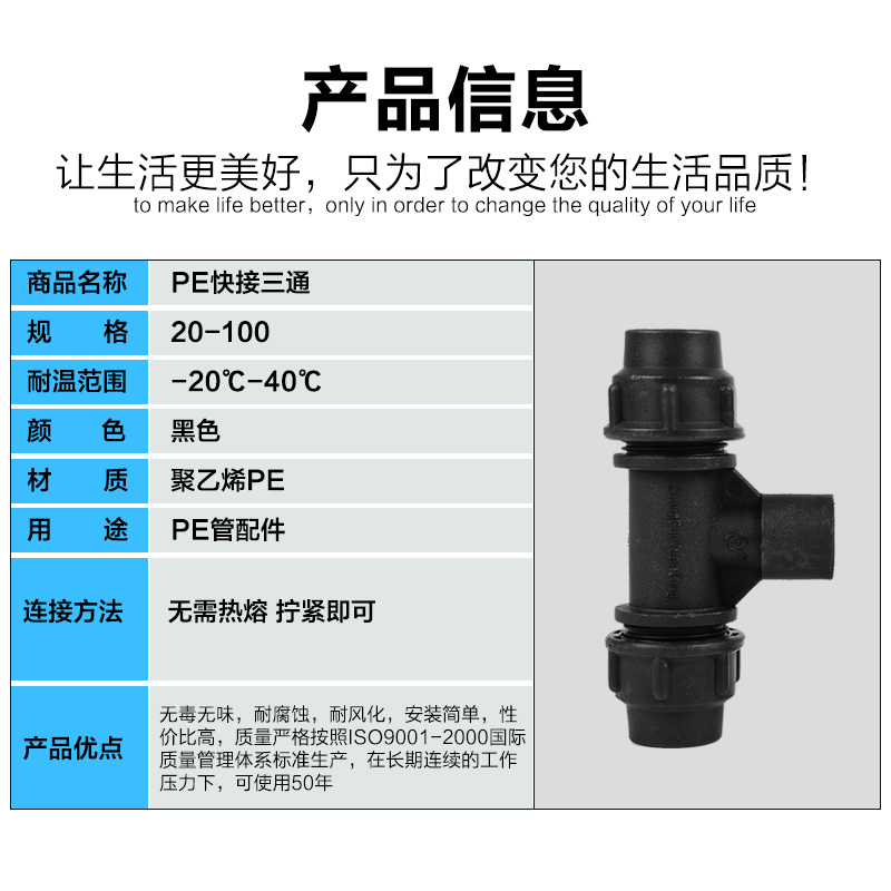 PE pipe fittings tap water pipe quick connector inner wire outer wire tee 20 four 25 six points 32 heat-free live joint