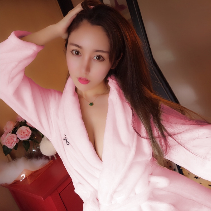 Korean pajamas female autumn and winter flannel sexy coral velvet warm padded velvet long robe winter