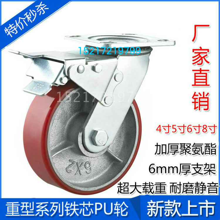 Heavy 4 inch 6 inch 6 inch 8 inch single wheel 1850 iron core PU wheel polyurethane caster double bearing