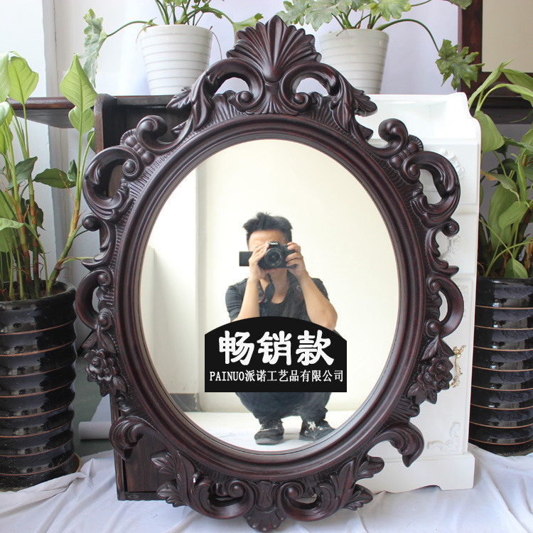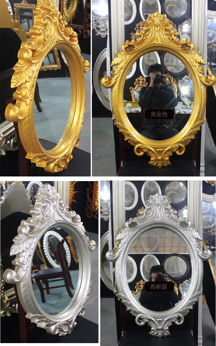 PU Mirror Retro European Bathroom Mirror Powder Room Oval Makeup Mirror Decorative Mirror Makeup Mirror Gold