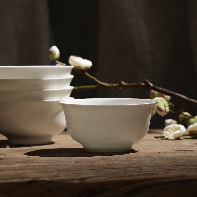 4 5 Inch Bone China Rice Bowl High Foot White Chinese Style Microwave Oven Bowl Home Eating Ceramic Bowl Cutlery
