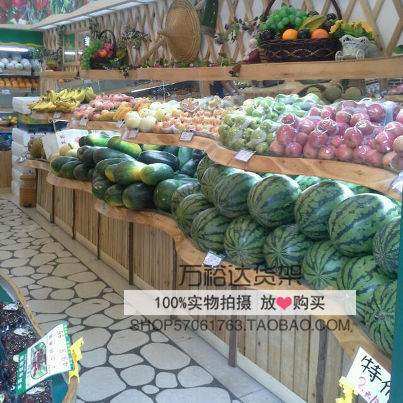 Baiguoyuan fruit shop shelf Supermarket fresh fruit and vegetable display rack Wavy wooden fruit dried fruit display shelf