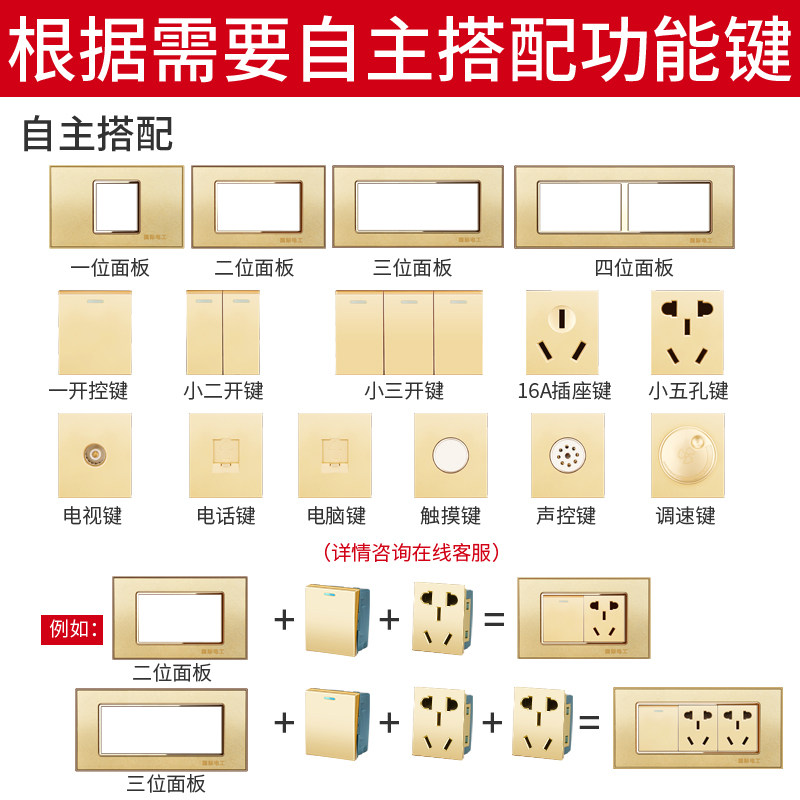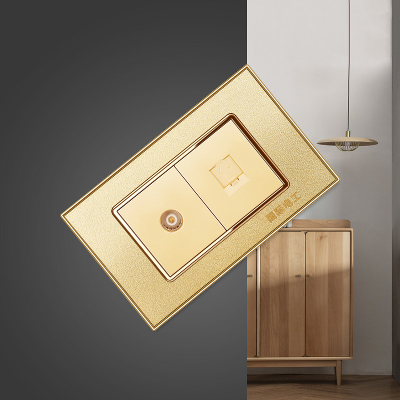 (Two TV Computers) International Electrician 118 Type Switch Socket Panel Power Frosted Champagne Gold Socket