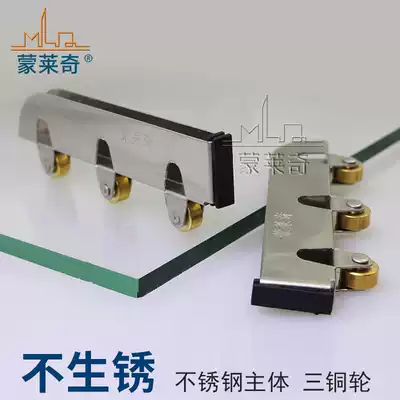 New upgrade 5mm glass pulley glass sliding door wheel sliding door wheel glass cabinet stainless steel copper wheel three pulley