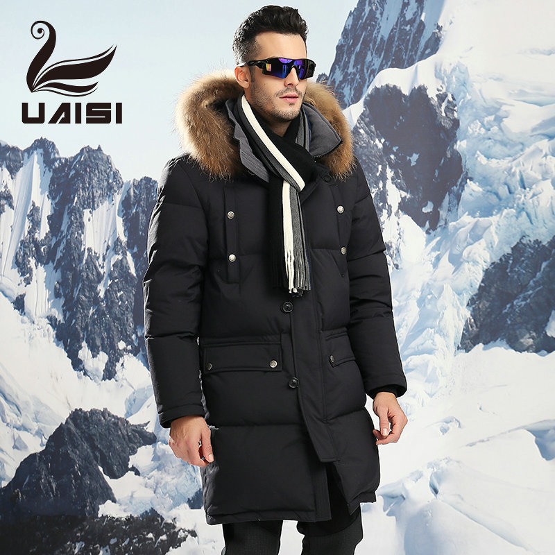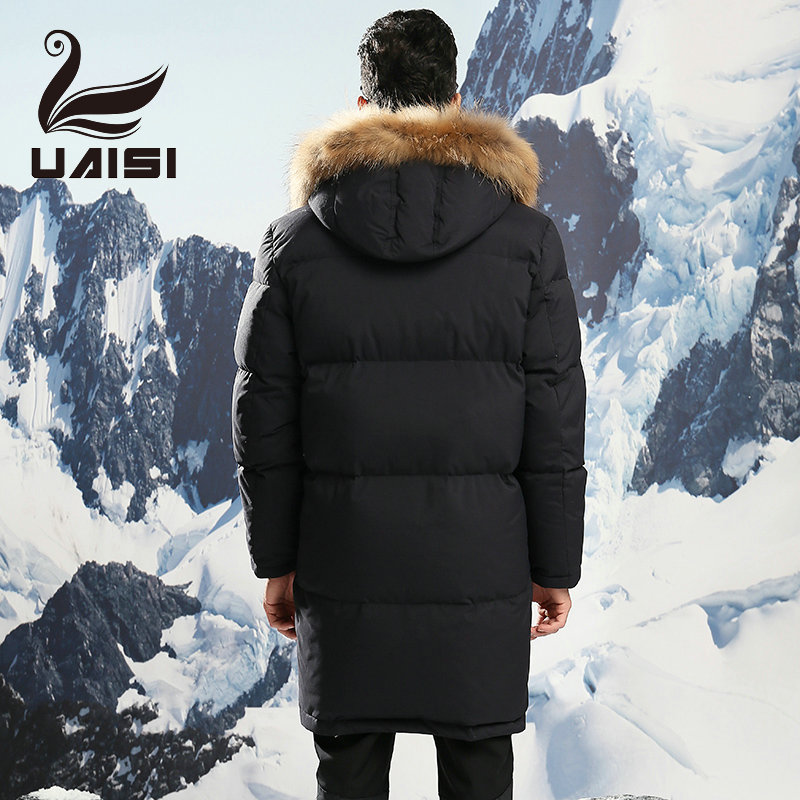 Goose down jacket men's long version over the knee winter new Korean version of raccoon fur collar hooded large size warm down coat