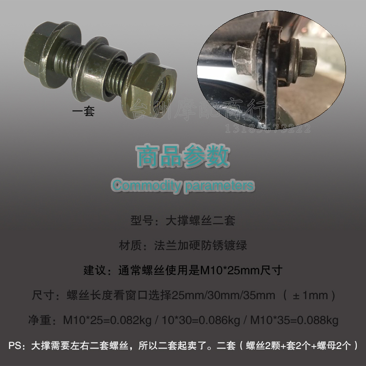 Bushing 2 yuan M10 * 25 two sets (see picture) M10 * 30 two sets (see picture) M10 * 35 two sets (see picture)