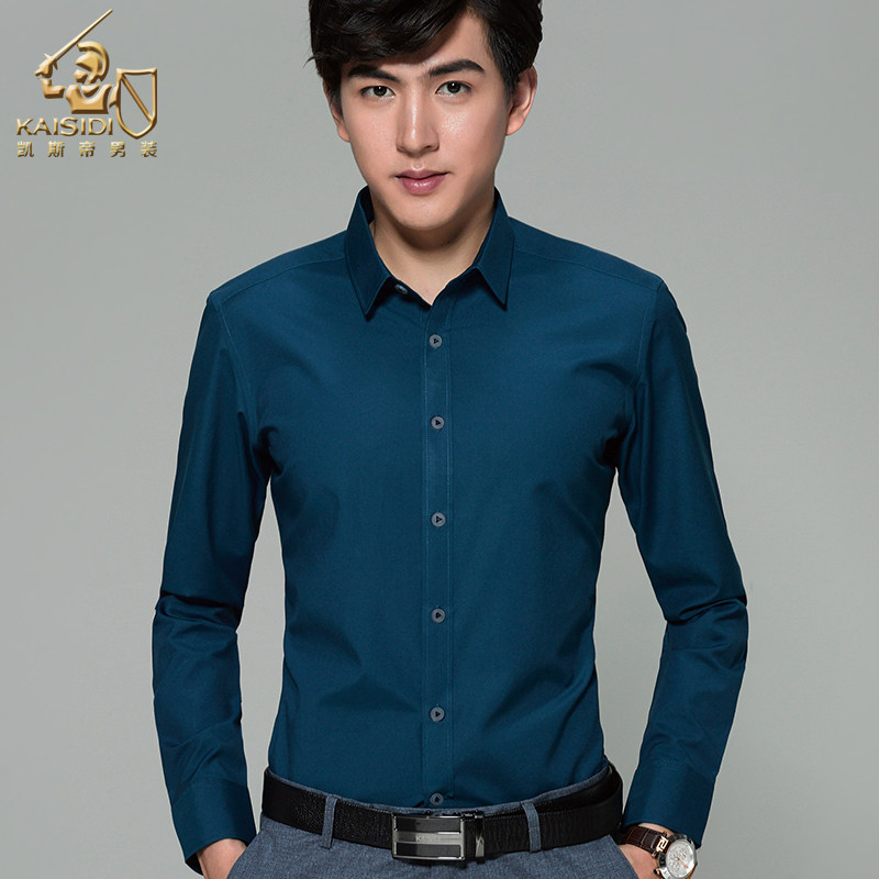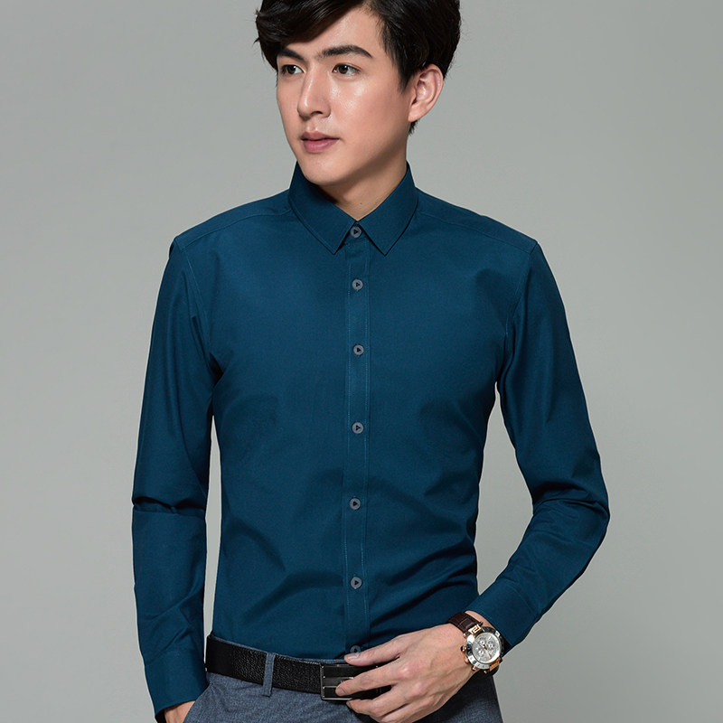 Spring Pure Color Men's Free Ironing Long Sleeves Shirt Han Edition Sashimi Business Casual Youth Shirt Dark Inn Shirt