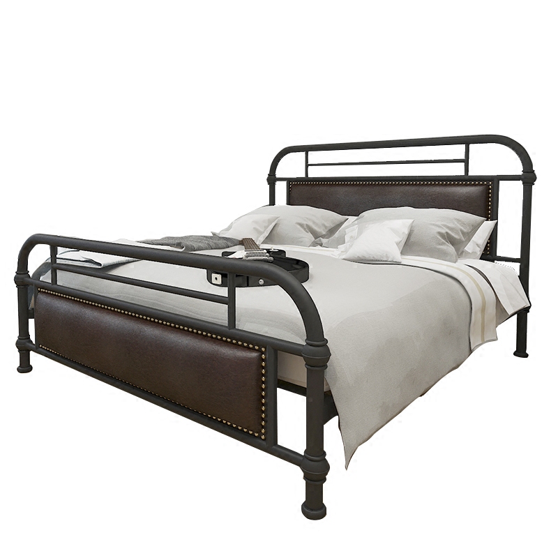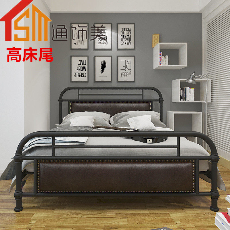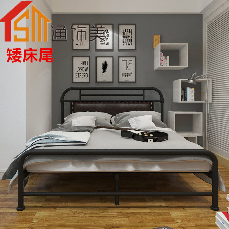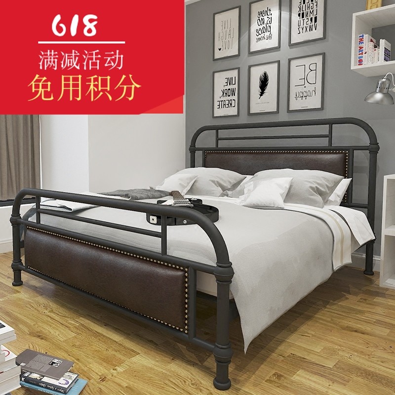 European Wrought iron bed 1 2 1 5 1 8 meters single bed Double bed with padded backrest Iron bed frame Simple iron frame bed