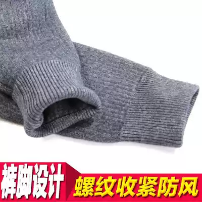 Full worsted men's cashmere wool pants double thick slim knee support waist high waist middle-aged warm pants autumn and winter