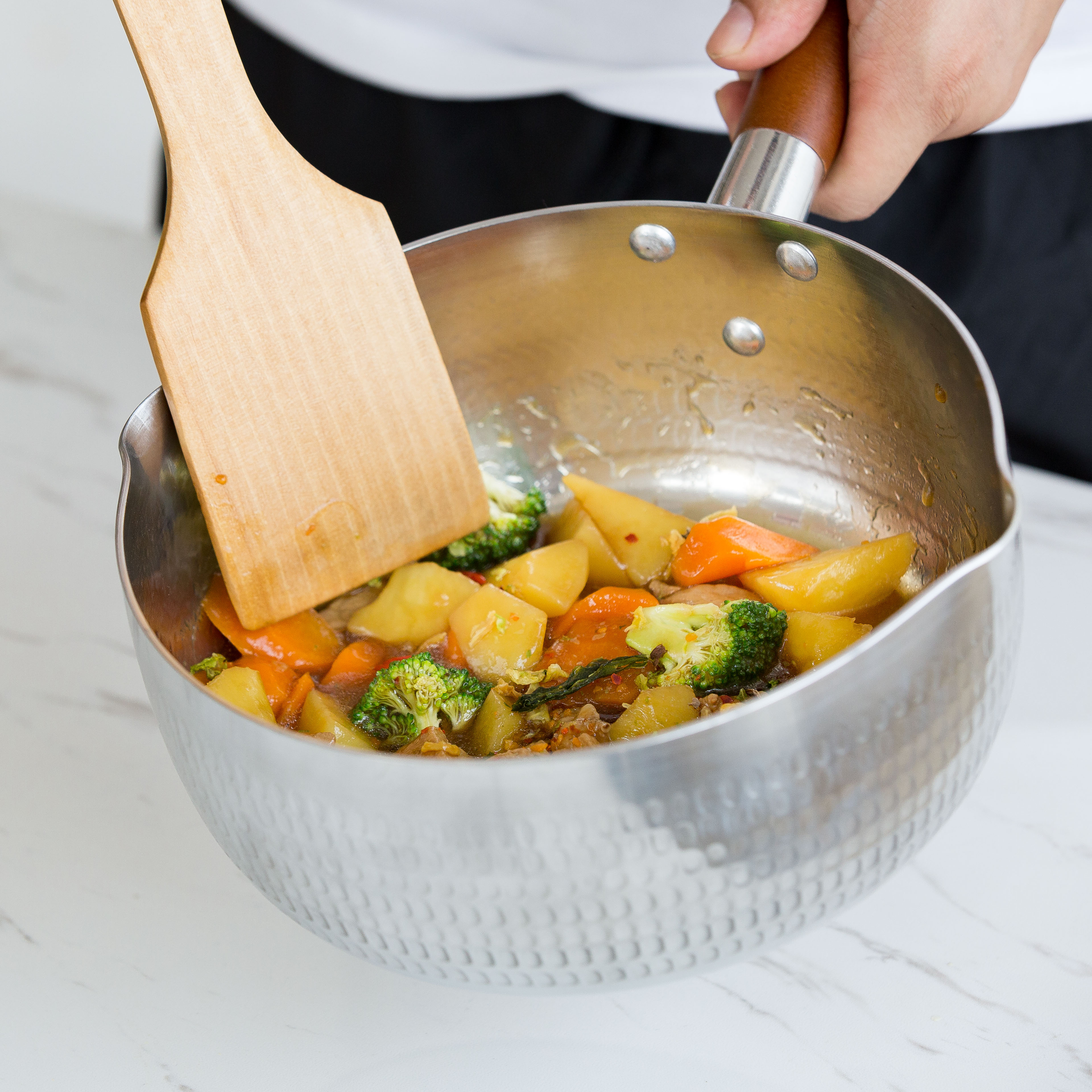 Siyue Japanese-style snow pan aluminum alloy wooden handle milk pot soup pot cooking ramen pot induction cooker open flame universal