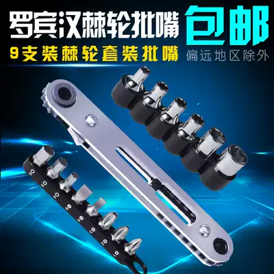 Robin Hood elbow screwdriver ratchet screwdriver 9 sets of 16 sets of double mouth cross one-shaped hexagon socket socket