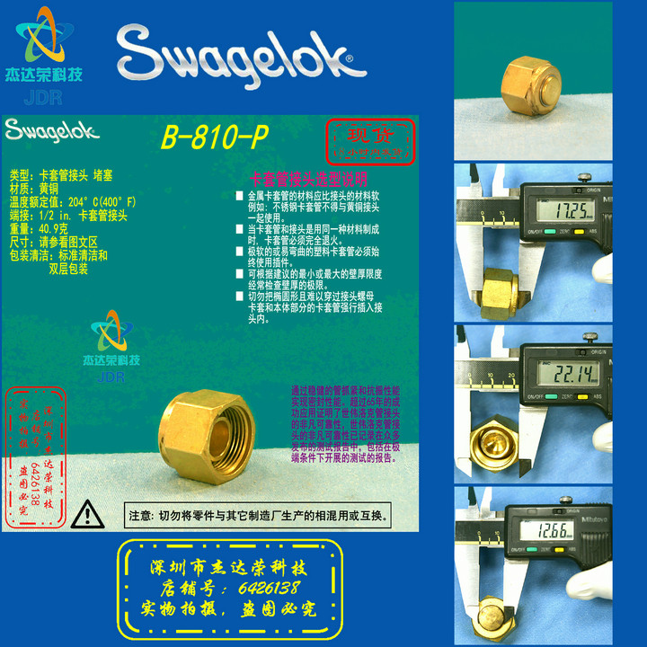(B-810-P)Swagelok Swagelok brass 1 2 in ferrule pipe joint plug