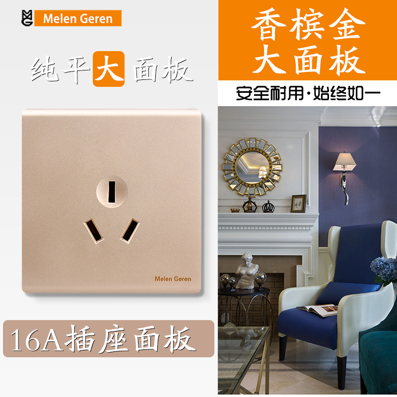 Meilan Riland 86 type socket large plate frameless champagne gold high-power water heater air conditioning plug 16A three-hole panel