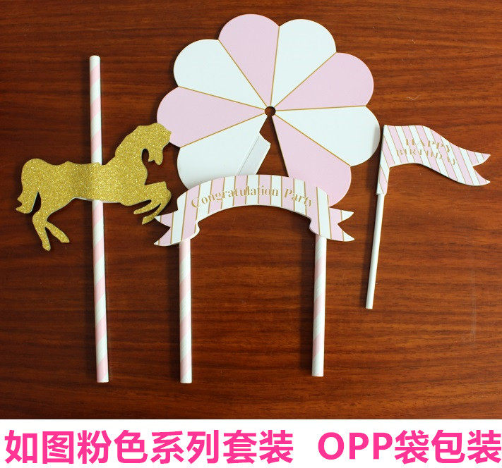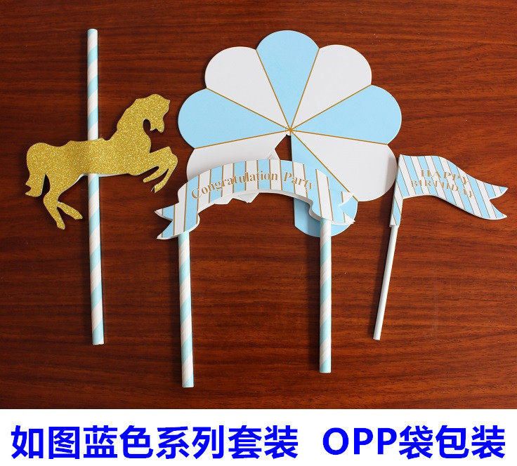 Birthday Cake Plug Party Supplies Carousel Themed Arch Plug Cake Decoration Flag Plug