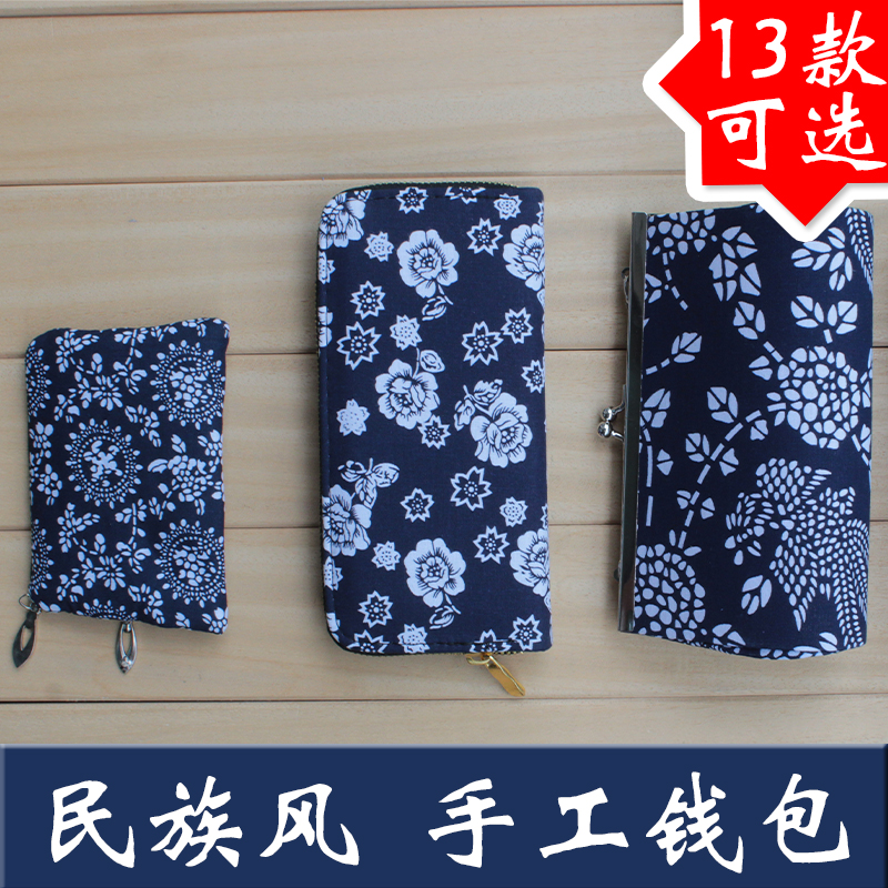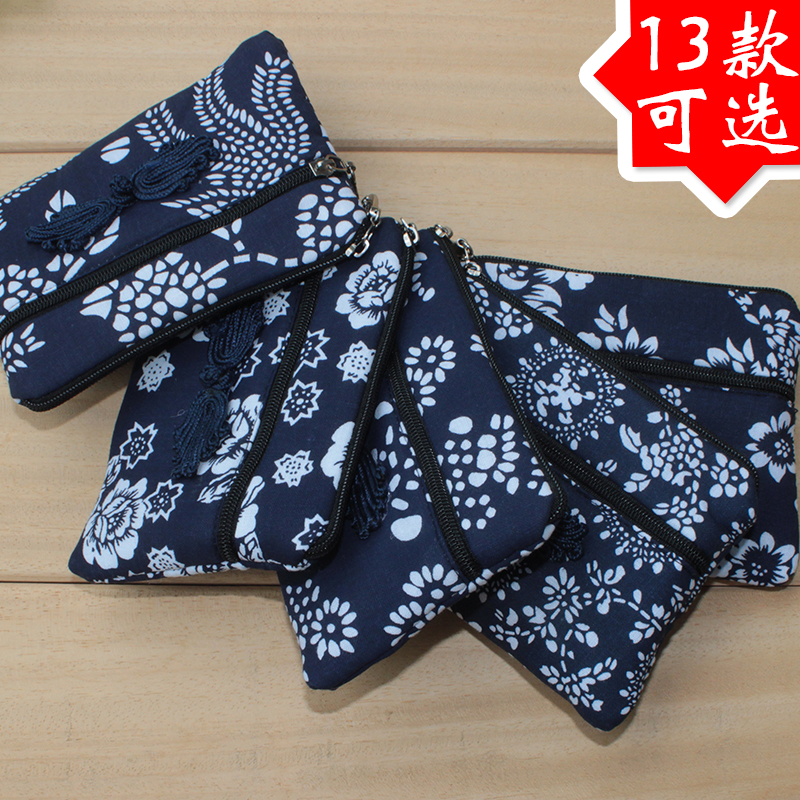 2021 new Wuzhen ethnic wind blue printed cloth pure cotton buns bag casual mobile phone zero wallet small bag lady card bag