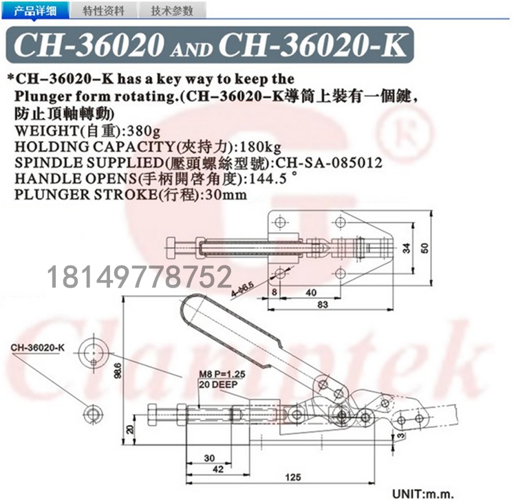 Push-pull clamp CH-36020 Quick clamp CH-36020K Woodworking clamp Quick elbow clamp Taiwan Jiagang