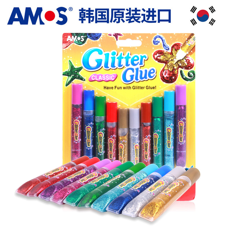 AMOS Korea imported glitter glue Children's handmade DIY greeting card photo frame Gold chalk classic 10-color glue brush