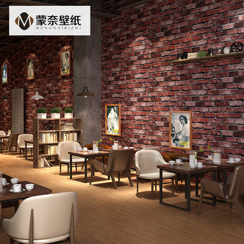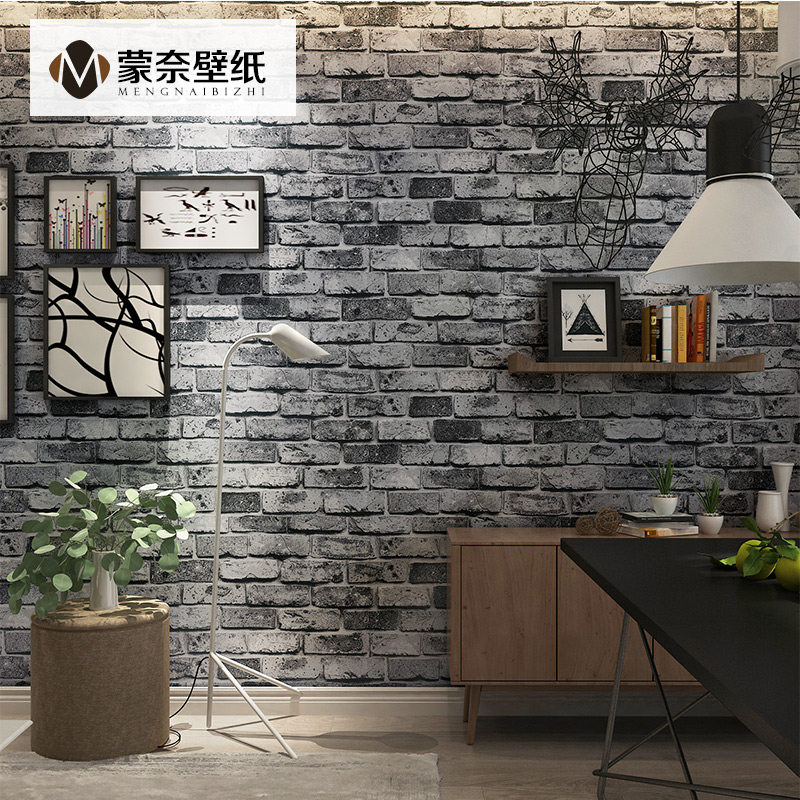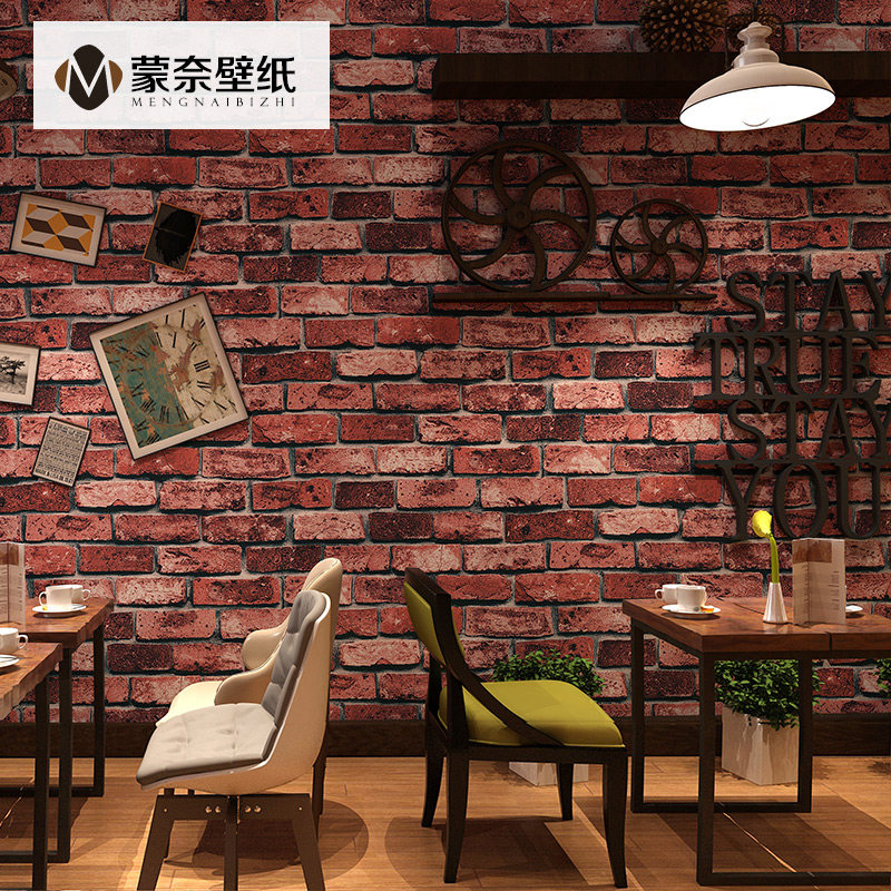 3D three-dimensional imitation brick Vintage brick brick pattern brick wallpaper Antique brick hotel green brick wallpaper background wall Non-self-adhesive