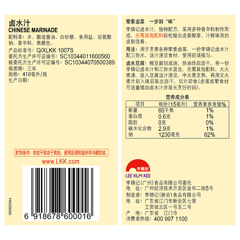 Li Jinji Halogen Juice 410ml*2 bottles of secret halogen household halogen cake five fragrance halogen tofu halogen meat