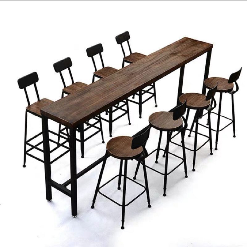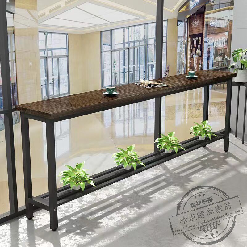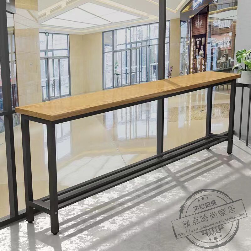 Solid wood bar table Home Balcony Long Narrow Table High And Low Feet Short Table Chair Milk Tea Shop Iron Art Solid Wood Close To Wall Table