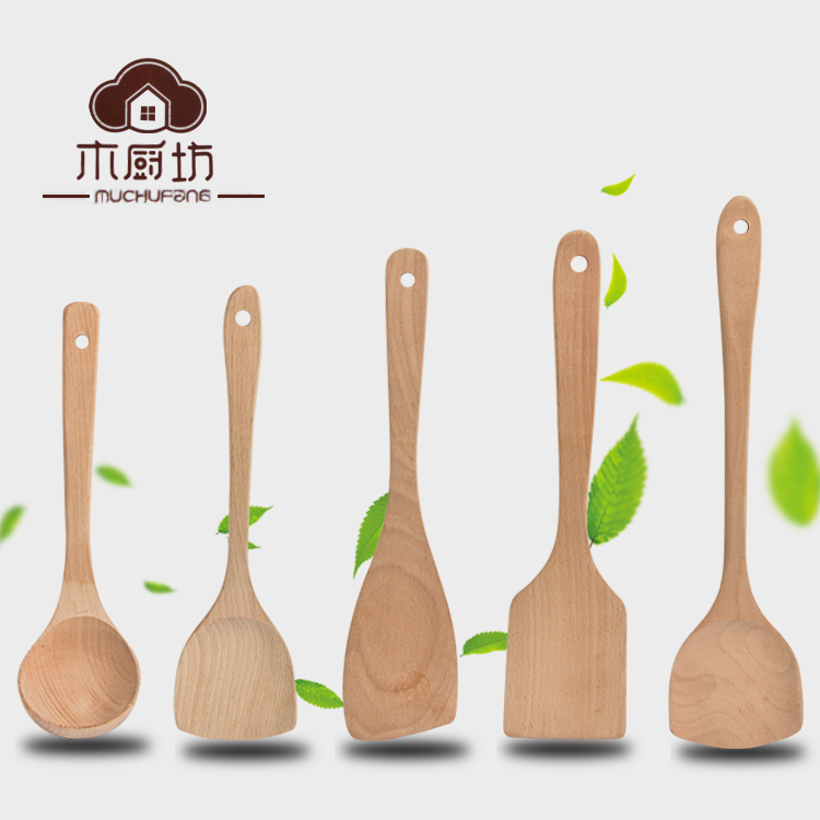 Beech wood shovels not stained with no lacquered pan turnovers wood shovels suit beech-fried vegetable shovels soup spoons with long shank kitchenware