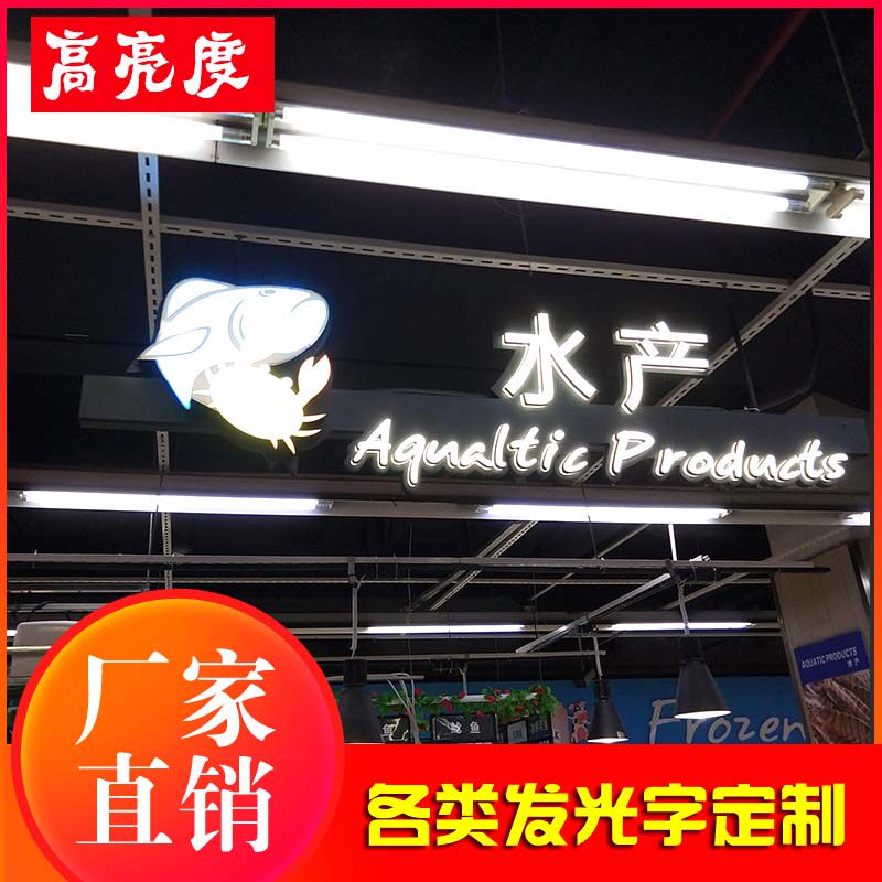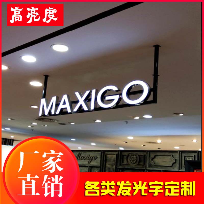 Stainless steel led advertisement luminous word resin character hoisting supermarket luminous character door head hanging rod sign set