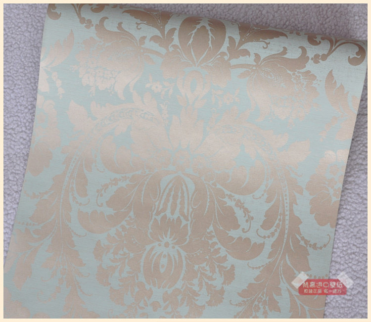 US imported pure paper wallpaper American rural blue-gray Damascus living room background wall clearance