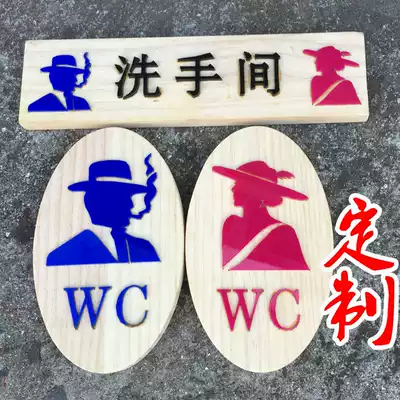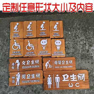 Custom bathroom house number listing signboard powder room toilet creative wooden signboard retro thatched cottage pit