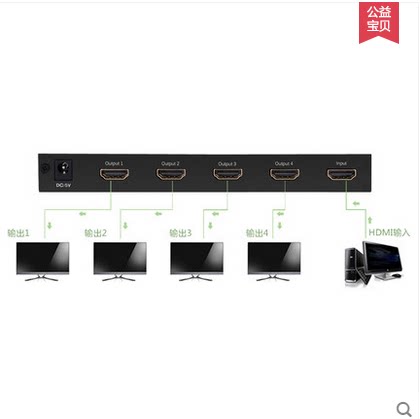 Green Union HDMI dispenser 1 in 4 out 4k * 2k switcher 10%-4 high definition divider TV 3D