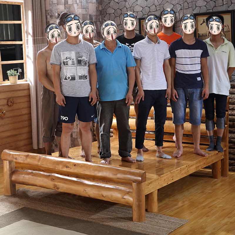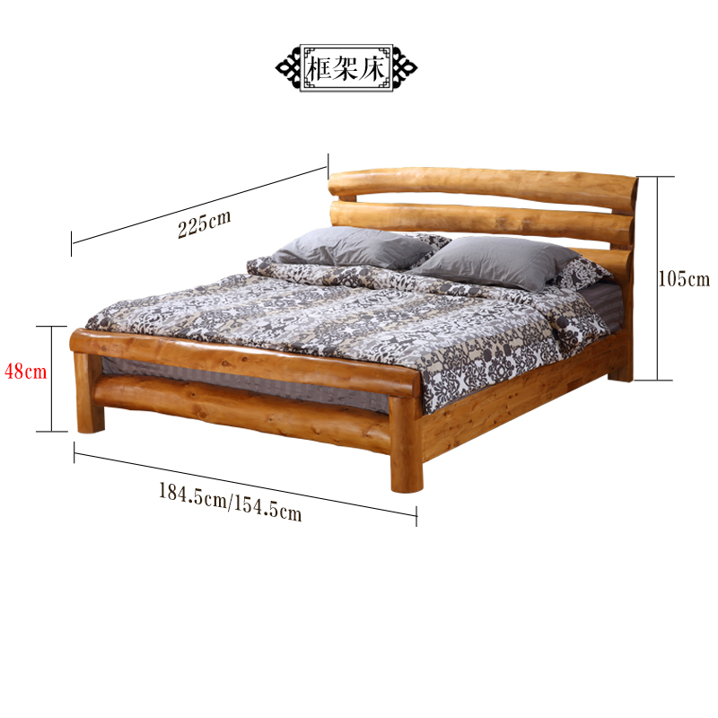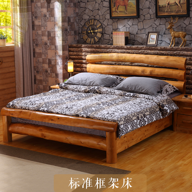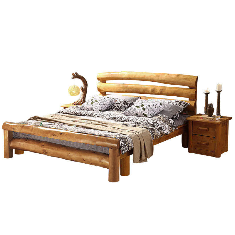 Log Hard Board Double Bed Full Berwood Solid Wood Modern Simplicity Chinese Tatami Wood Bed Eco Folk Furniture