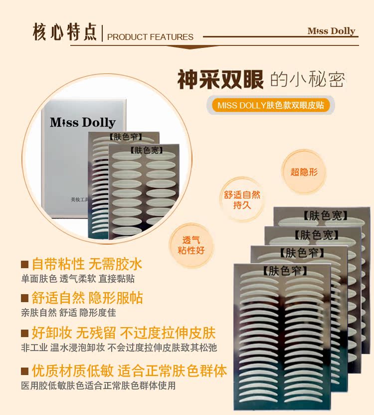 Invisible double eye leather patch 480 sticker 240 pair of natural no-dent breathable non-reflective beauty mesh with wide and narrow small bag