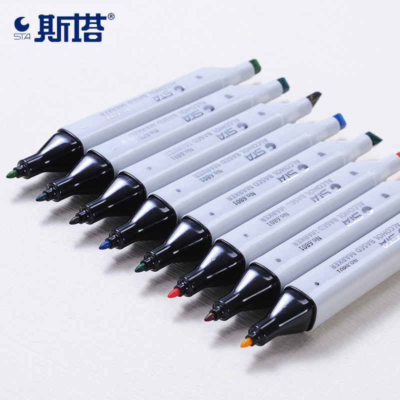 sta STA 6801 Double-headed oily color mike pen set for students 30 40 60 80 168 color animation drawing pen for students Special color mike pen set for art students