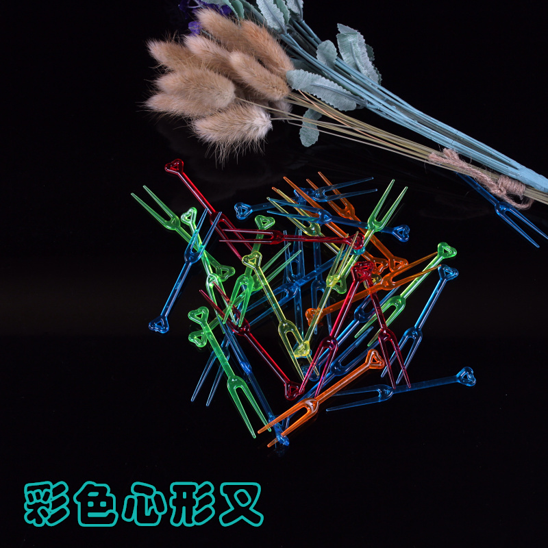 Disposable transparent fruit fork love fork heart-shaped plastic crystal fork two-tooth small fork fruit sign