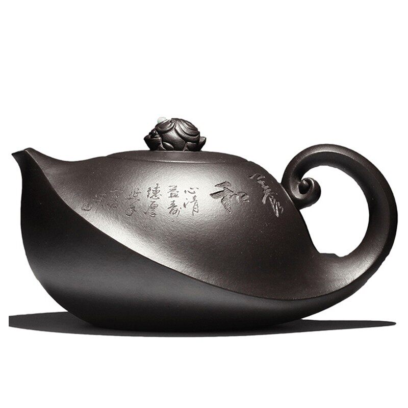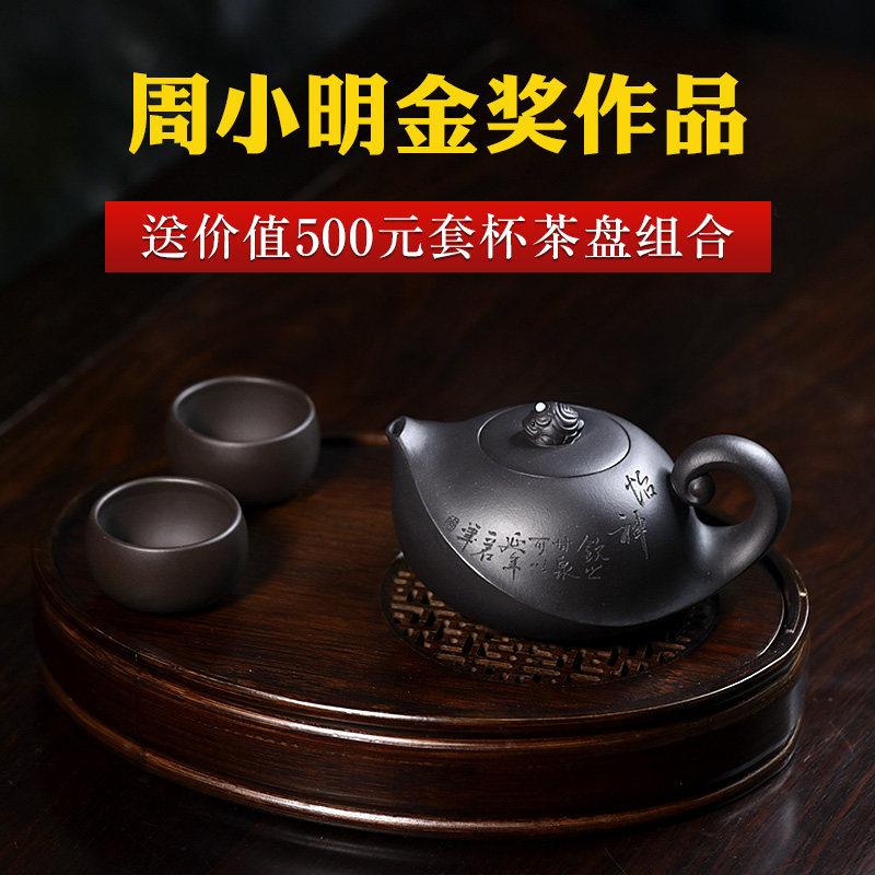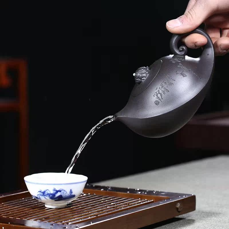 Famous pot Qiuyue Yixing purple sand pot famous master pure handmade high engineer Zhou Xiaoming Turtle dragon pot raw ore black mud