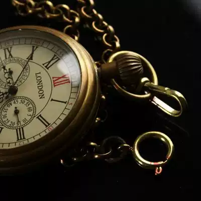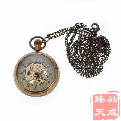 Pure copper retro old-fashioned winding mechanical pocket watch Glass mirror Romaji disk hollow film and television props